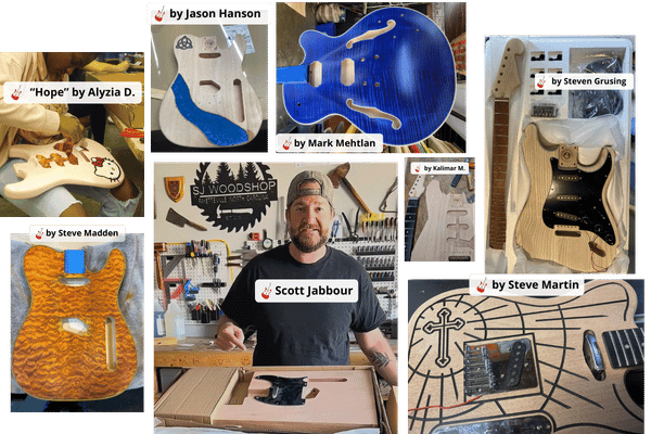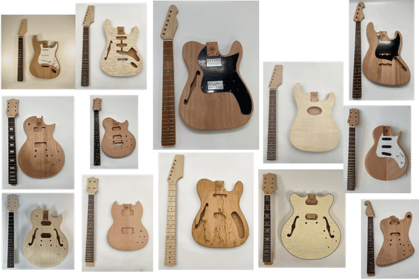 We offer more than 40 guitar kit body shapes. You can choose your own hand orientation, tonewood type, hardware, fretboard inlays, headstock shape, binding options & more.